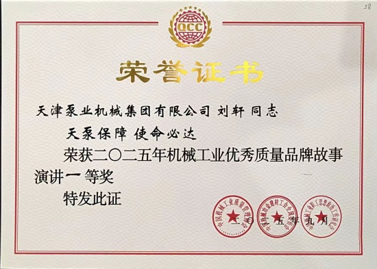 此次斬獲行業一等獎,既是對員工個人風采的肯定,更是對百利裝備集團所屬企業質量文化、品牌建設與黨建引領成果的高度認可。站在新的起點,天津泵業將堅定落實百利裝備集團部署,以此次獲獎為契機,持續深化品牌文化建設,在數字化轉型與綠色制造的浪潮中,講好更多“中國制造”的匠心故事,以實績實效為百利裝備集團建設世界一流裝備制造企業注入力量、添磚加瓦。