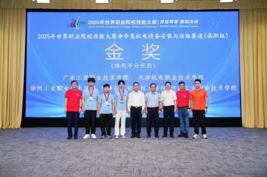近日,2025年世界職業院校技能大賽爭奪賽機電設備安裝與運維賽道(高職組)比賽圓滿落幕。百利裝備集團所屬天津機電職業技術學院(以下簡稱“機電學院”)孫子昊、馮一凡、周旭三名學生組成的參賽團隊斬獲金獎。